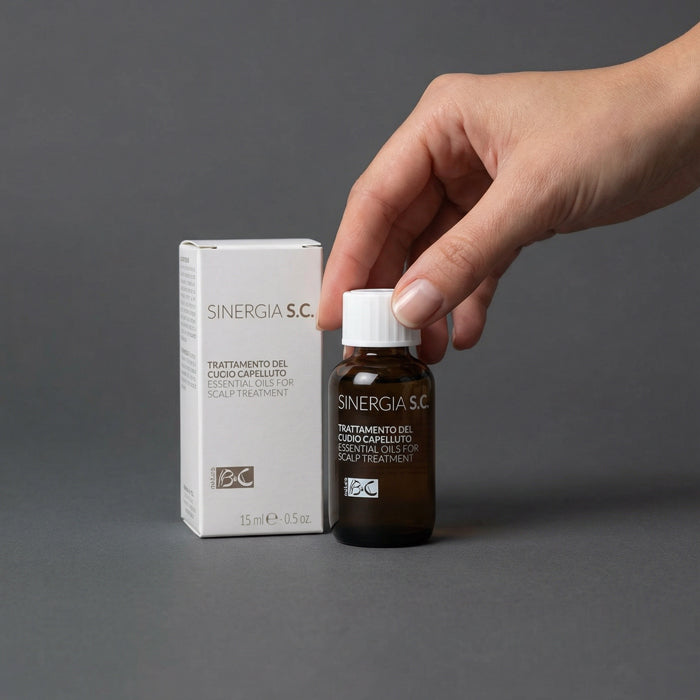 Applica con il pratico dosatore una decina di gocce di Sinergia S.C. massaggiando su tutto il cuoio capelluto. Il massaggio richiama sangue che nutre il bulbo pilifero. Sinergia S.C. riequilibra le ghiandole, mantenendo la giusta produzione di sebo, disinfetta, lenisce e protegge la pelle, riducendo la formazione di forfora.