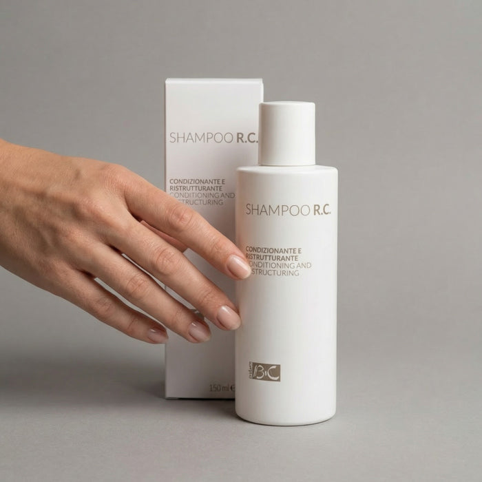 Prosegui con lo shampoo Shampoo R.C. adatto a tutti i tipi di capelli che nutre e idrata il capello, donando morbidezza, luce e volume.