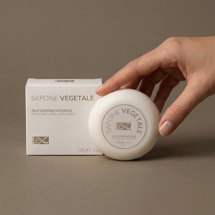 Il delicato Sapone Vegetale alla lavanda naturale deterge la cute in modo profondo, lascia la pelle liscia, gradevolmente profumata e vellutata al tatto.