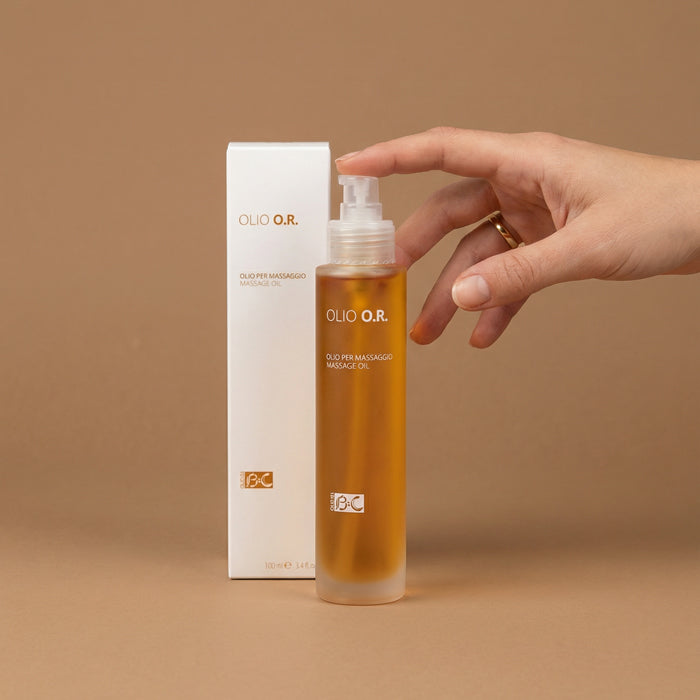Massaggia i glutei con l’Olio O.R. nutriente ed emolliente indicato per mantenere la pelle elastica, per rassodare i tessuti epidermici e prevenire la formazione delle smagliature.