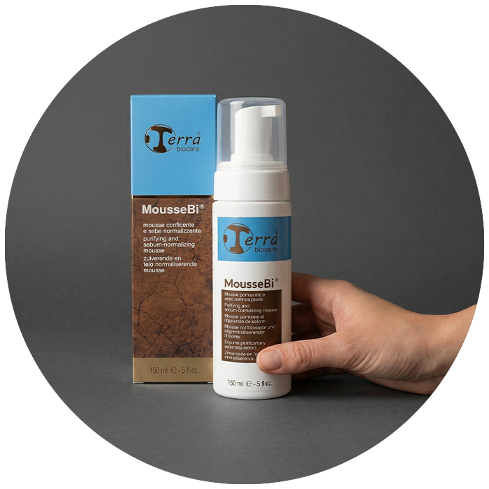 Dopo la normale detersione esegui una purificazione profonda utilizzando poco MousseBi® su un dischetto di cotone su tutto il viso. Agisce per spiazzamento del sebo e non richiede risciacquo. E’ adatto anche alla pelle più sensibile o infiammata.