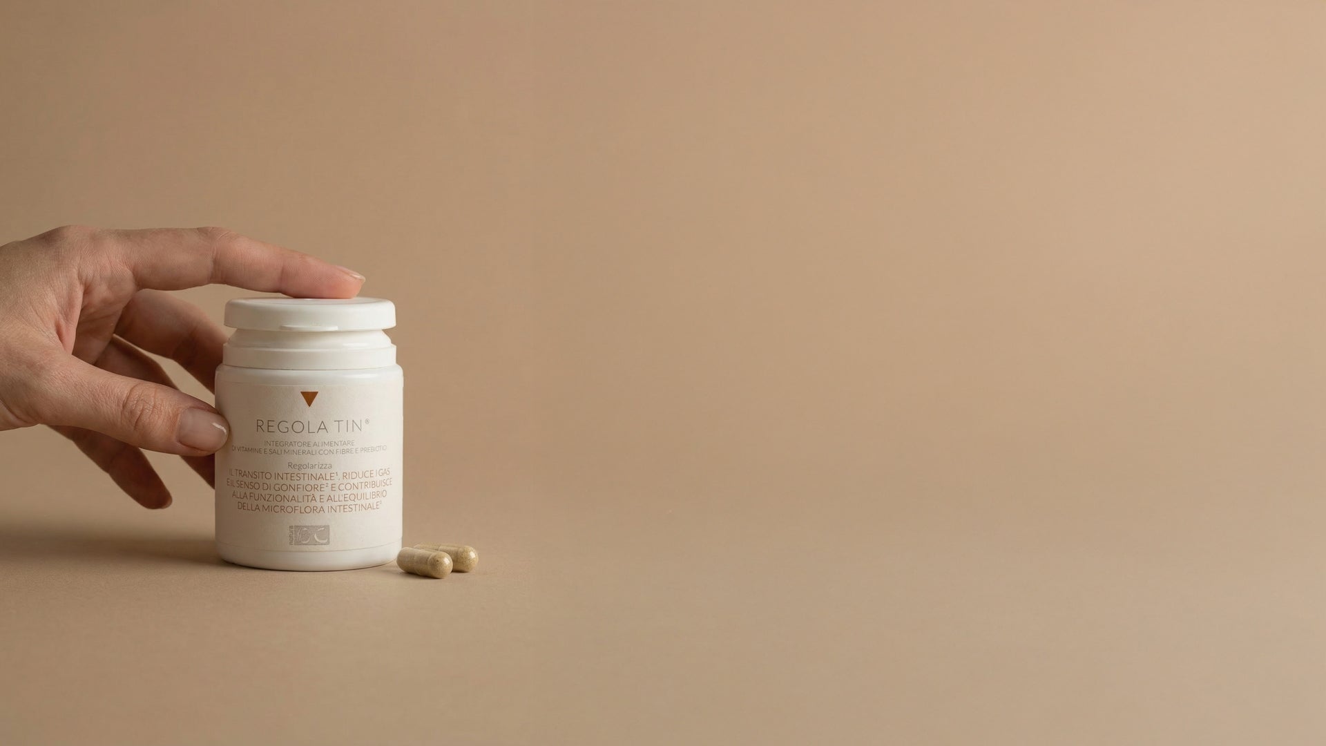 Integratore Alimentare di Vitamine e Sali Minerali con Fibre e prebiotici che regolarizza il transito intestinale, contribuisce alla funzionalità e all’equilibrio della microflora intestinale e riduce i gas e il senso di gonfiore. Capsule di gelatina vegetale. Prodotto conforme ad alimentazione vegetariana e vegana.